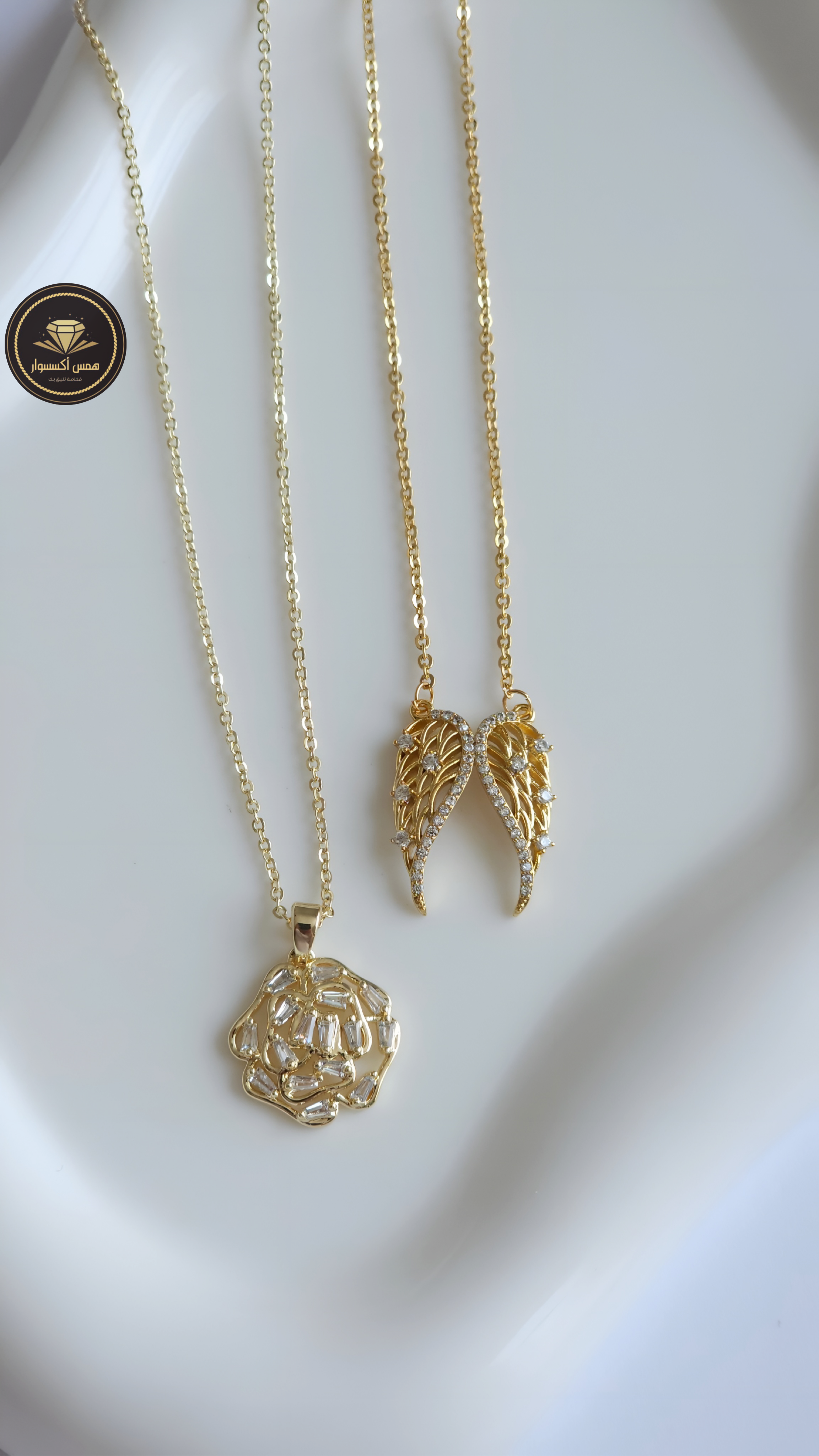 قلادة ذهبية على شكل جناحين وقلادة على شكل وردة السعر للواحدة