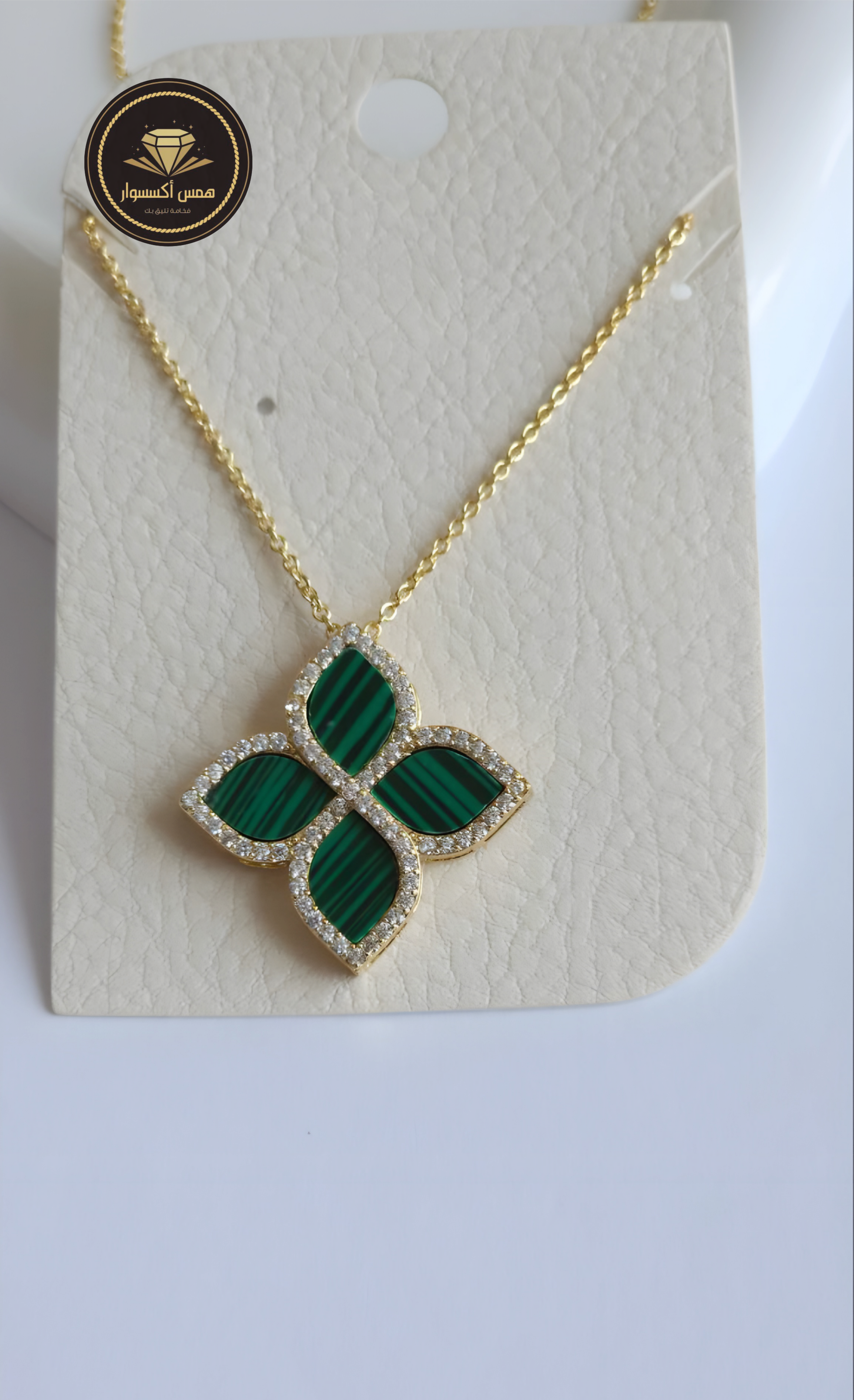 طقم حلق وعقد ذهبي ورقة البرسيم