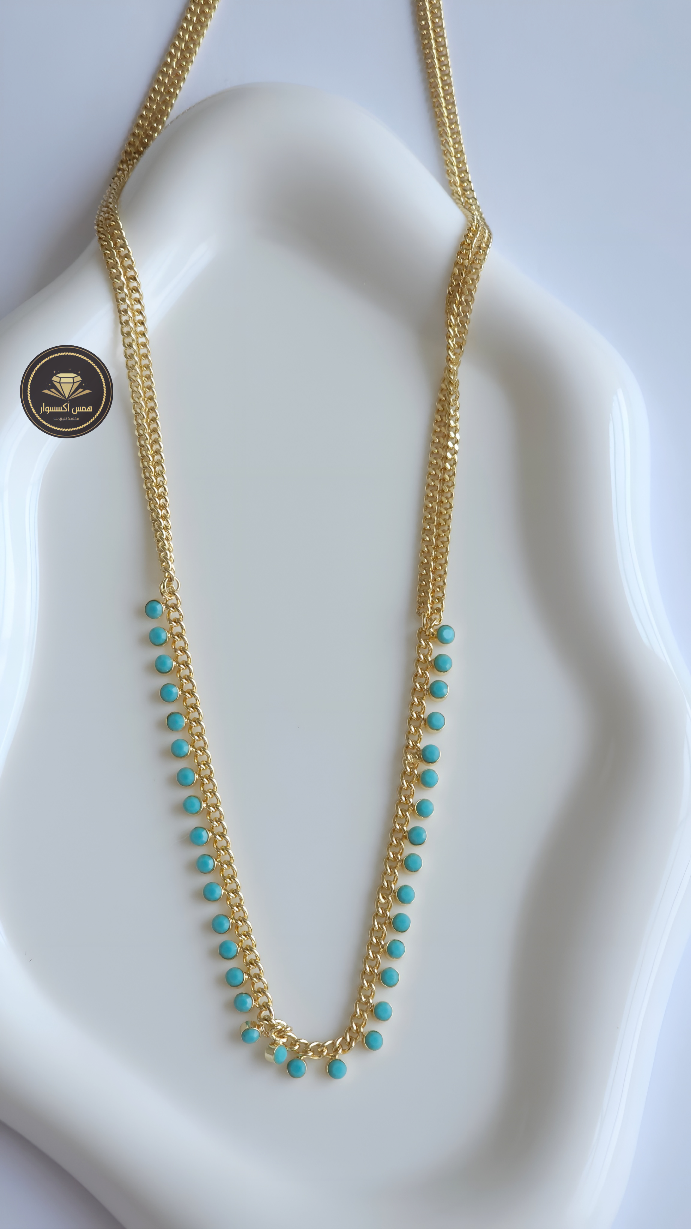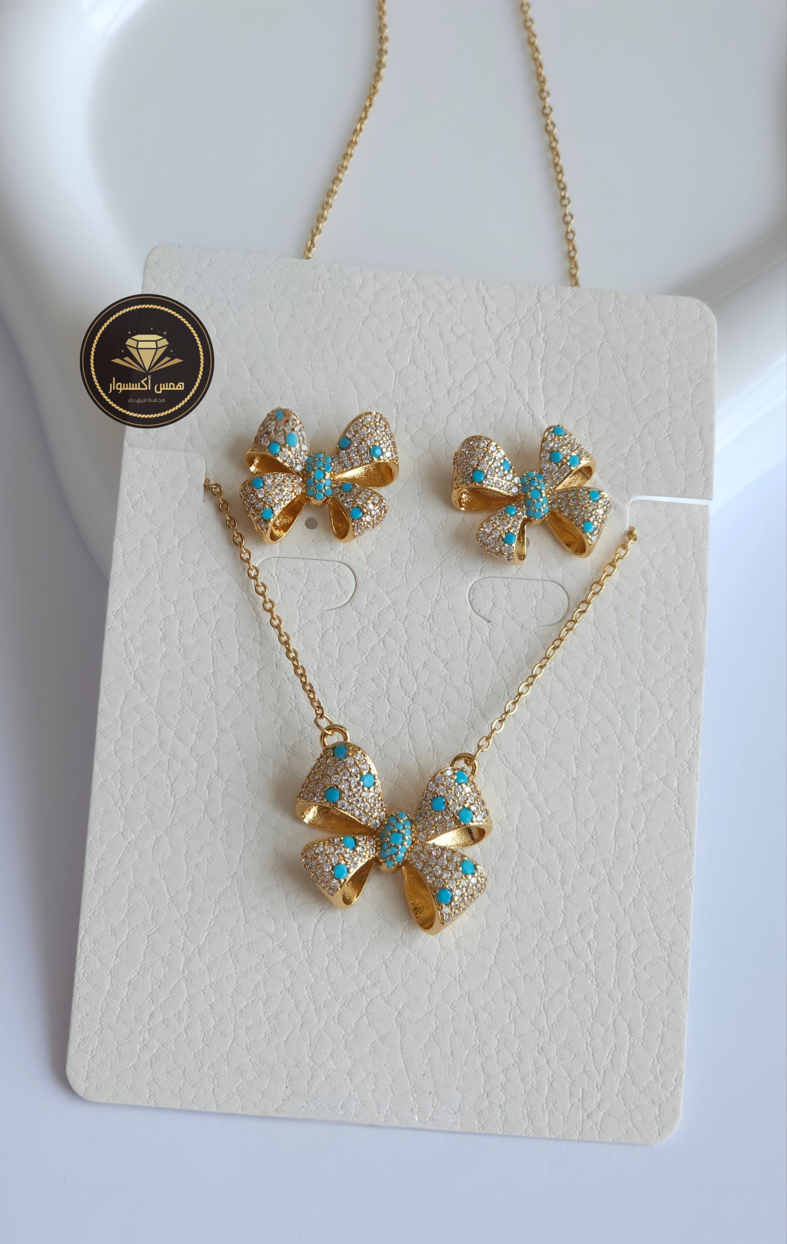طقم حلق وقلادة عقدة مرصعة بلألماس الفيروزي