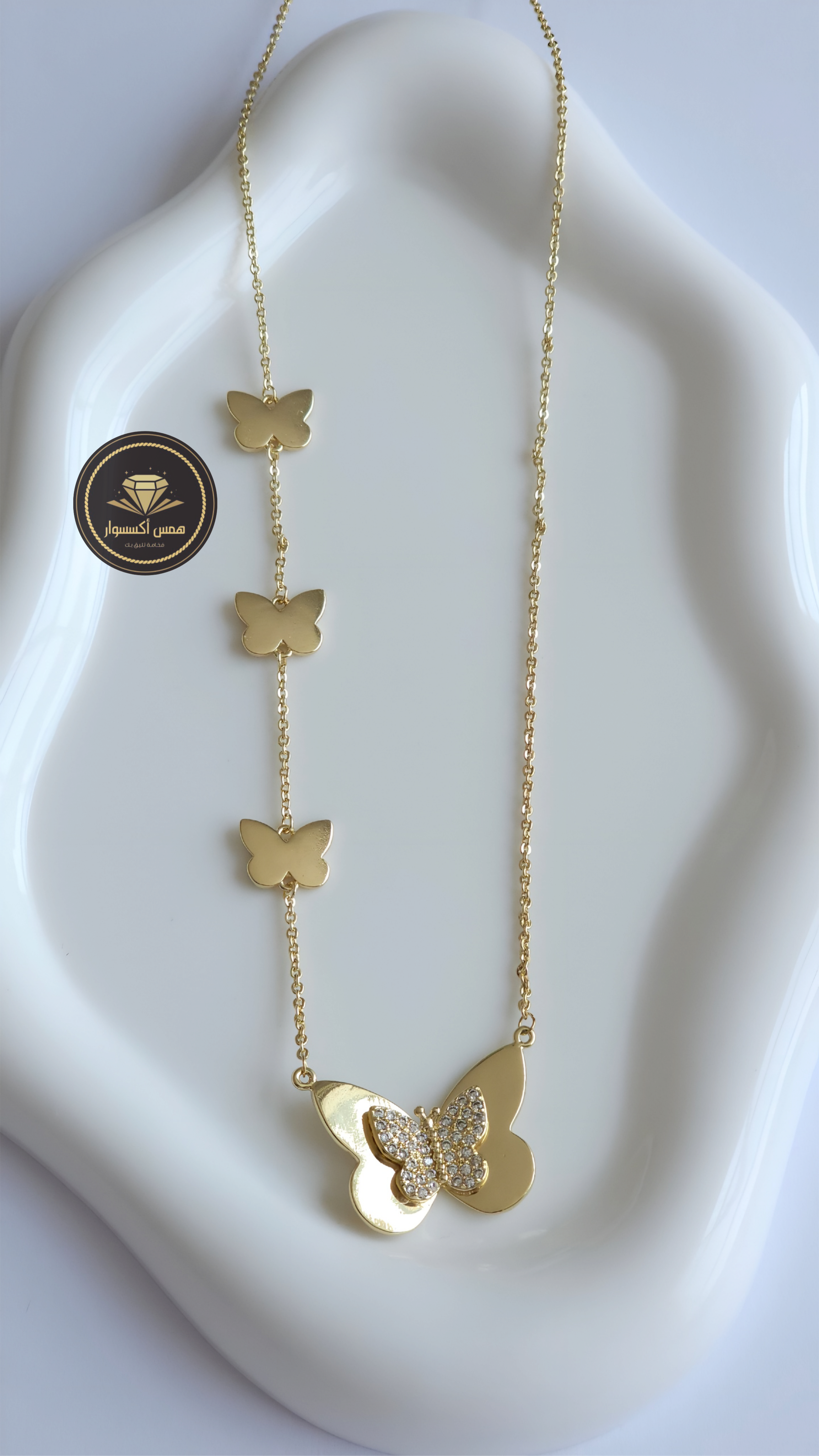 قلادة الفراشات ذهبية مطلية بعيار 18