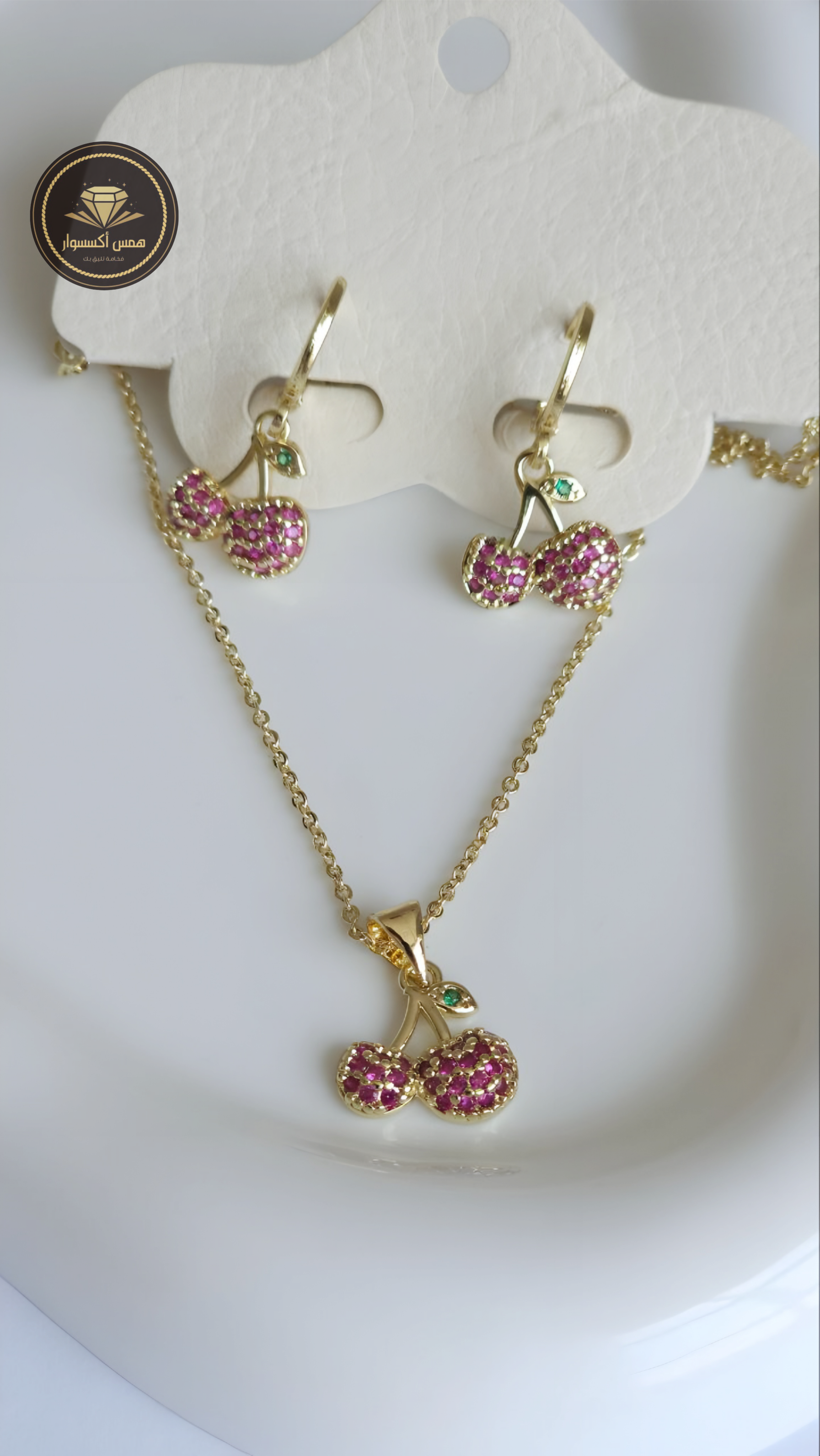 طقم حلق وقلادة مرصع بلألماس الاحمر