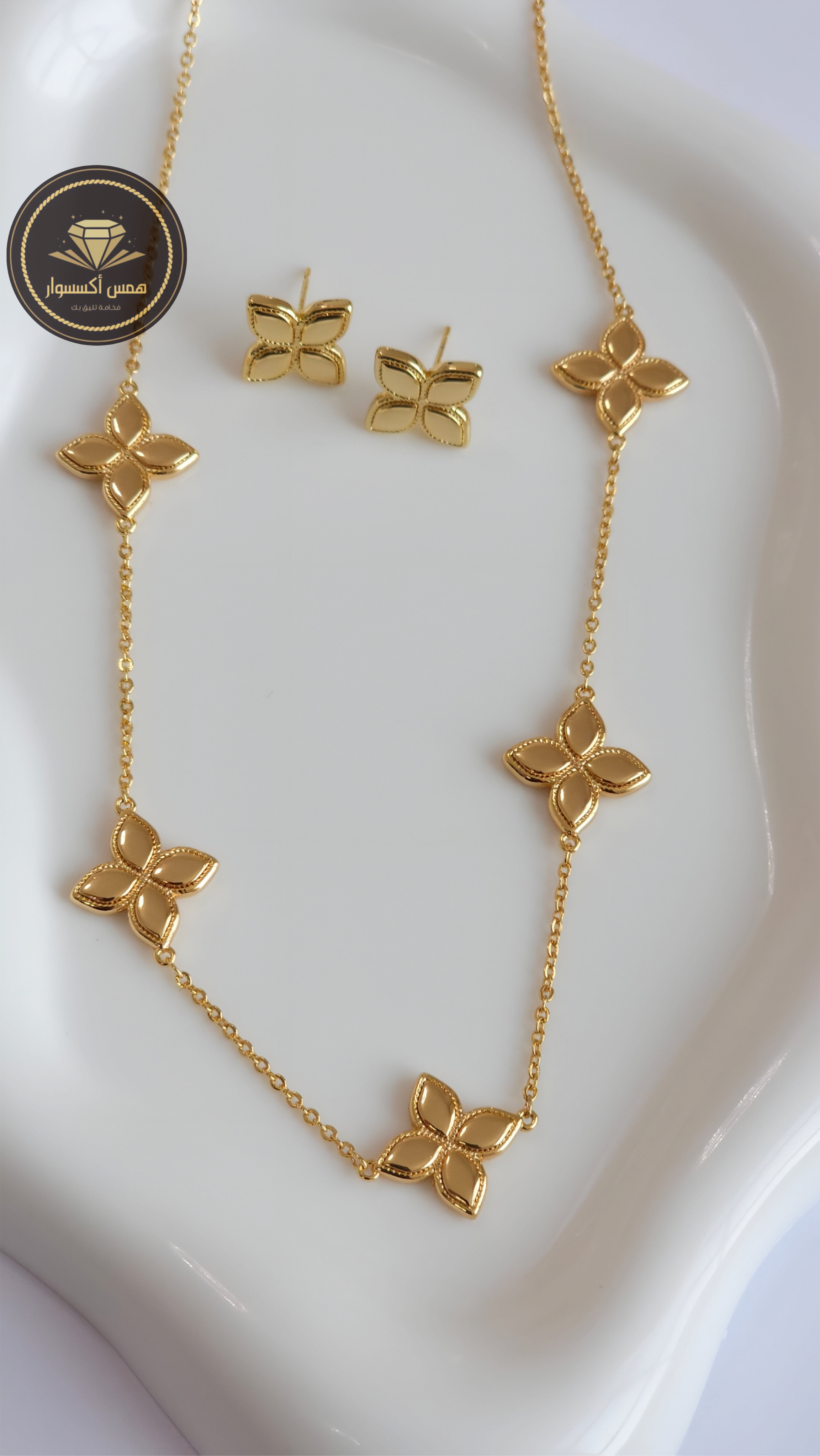 طقم حلق وعقد ذهبي ورقة البرسيم