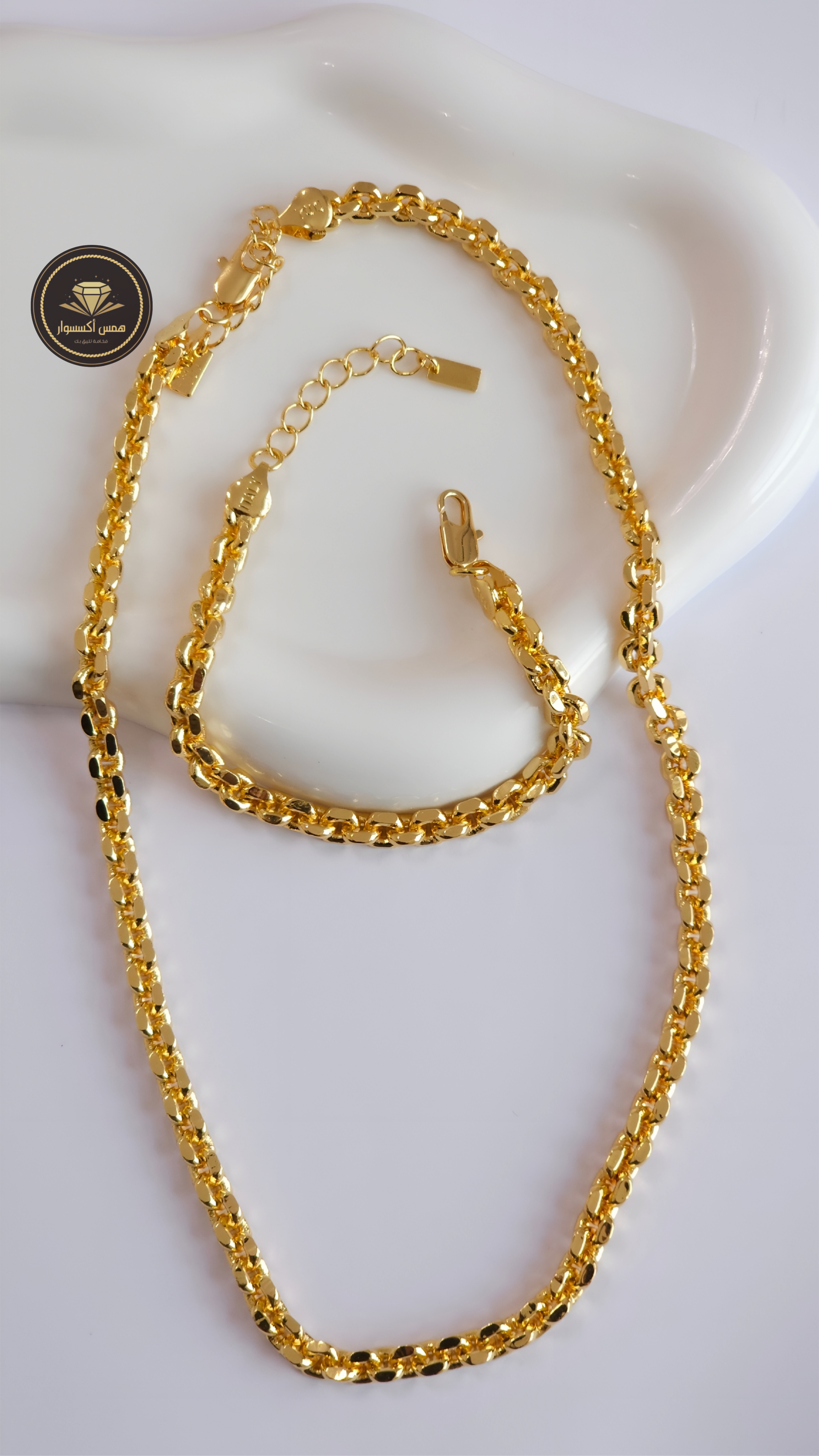 طقم اسوارة و قلادة زرد ذهبي مطلية بعيار 21