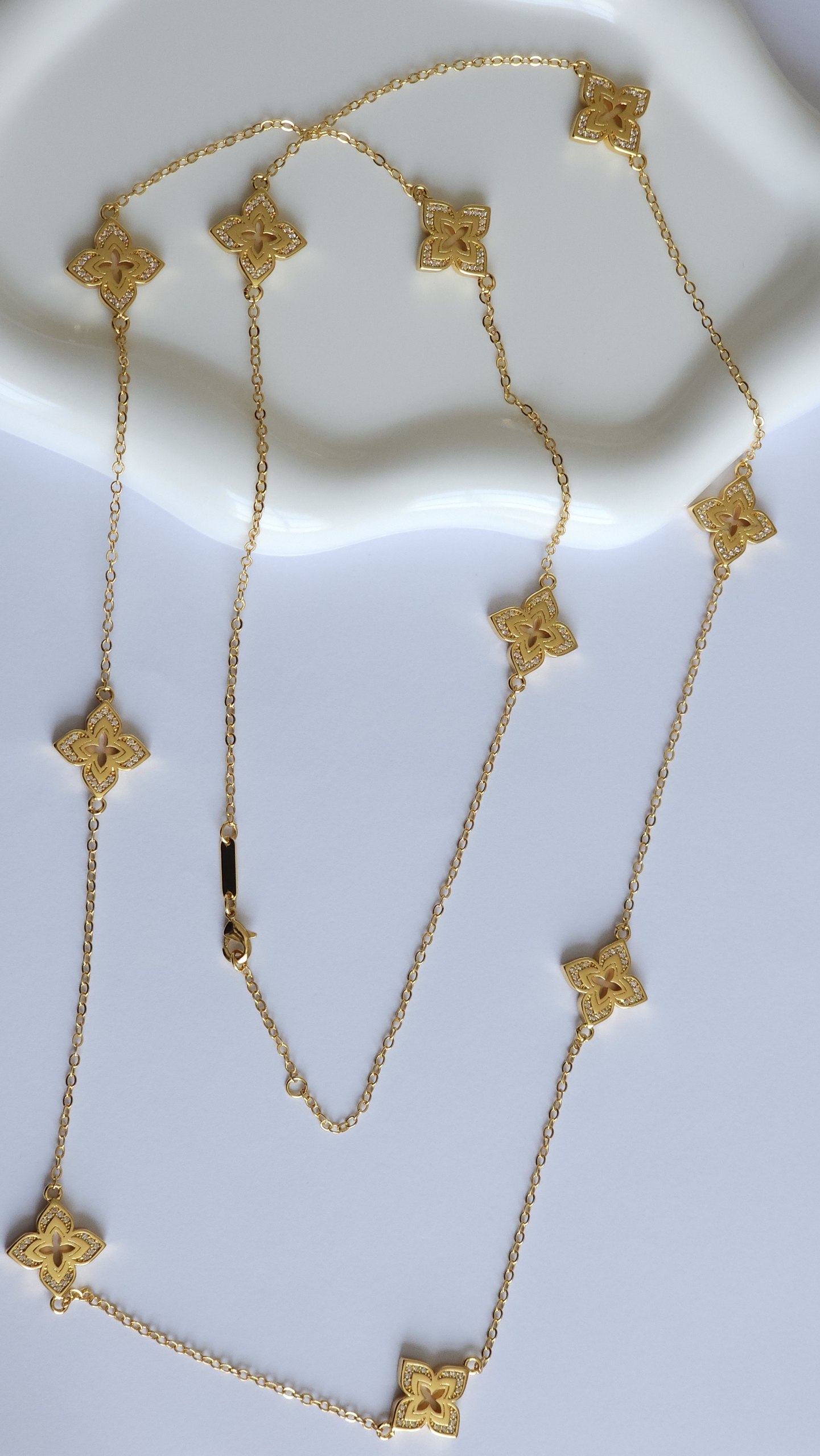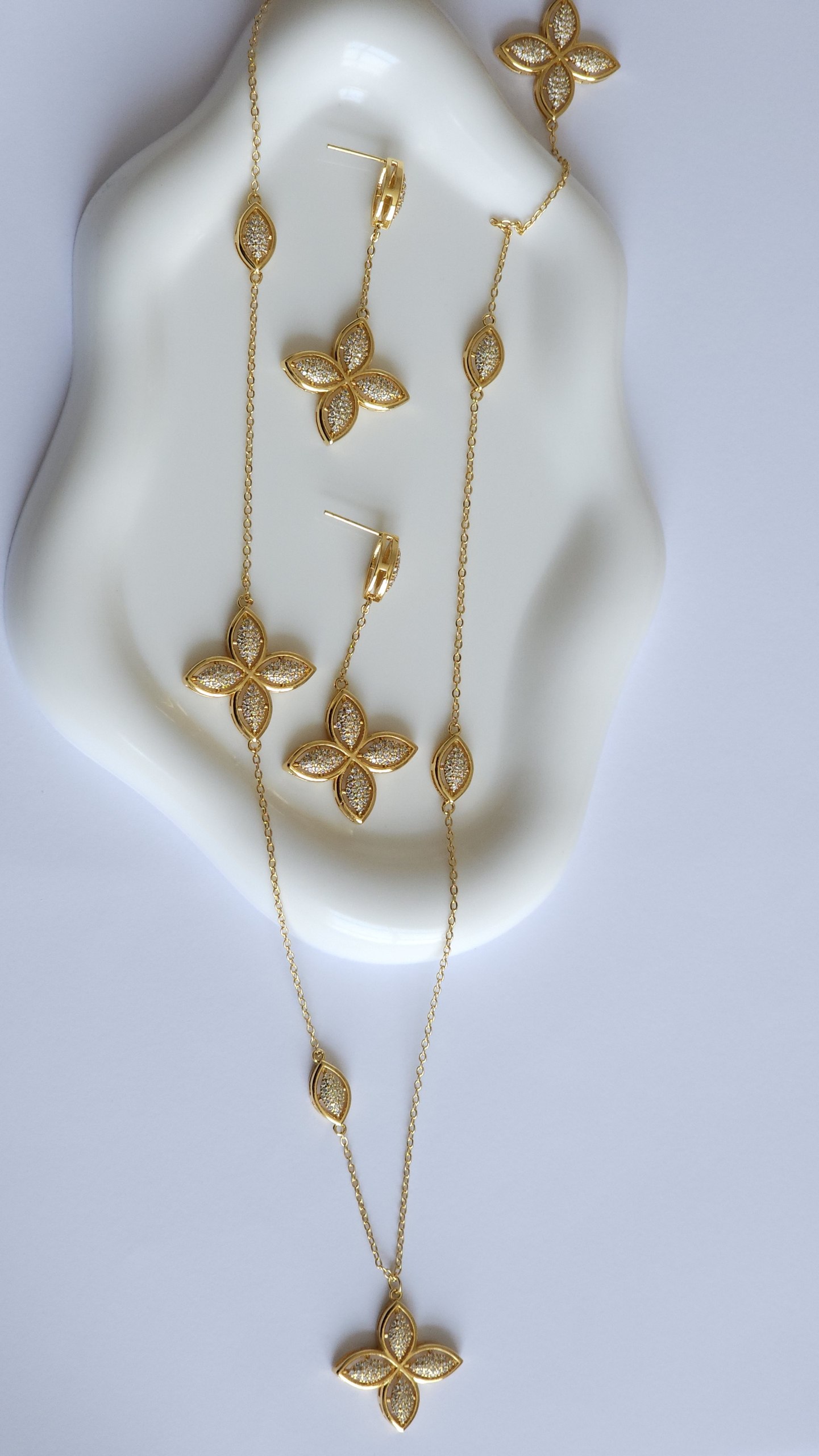 عقد طويل وحلق وردة مرصعة بلذهب والالماس