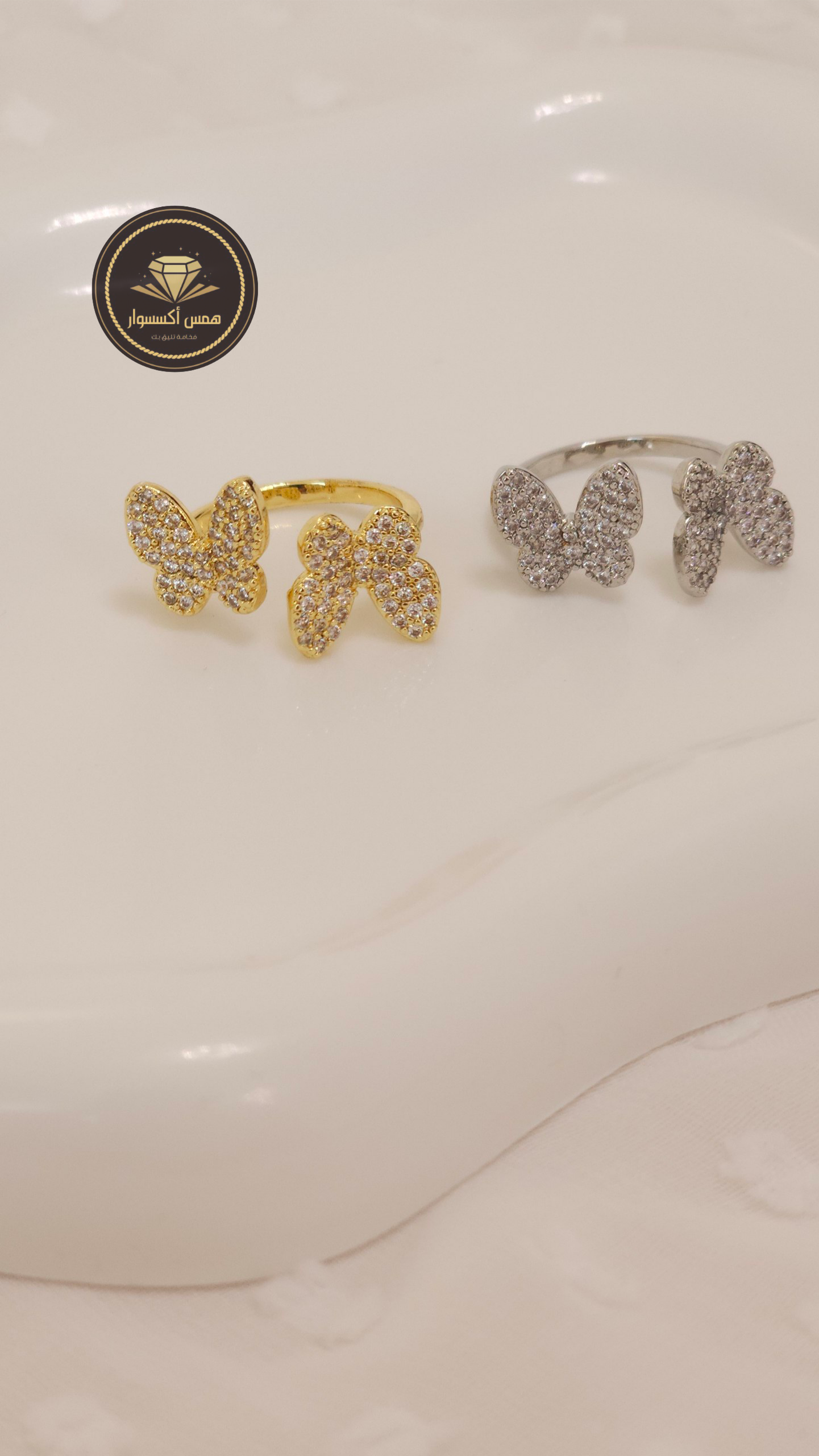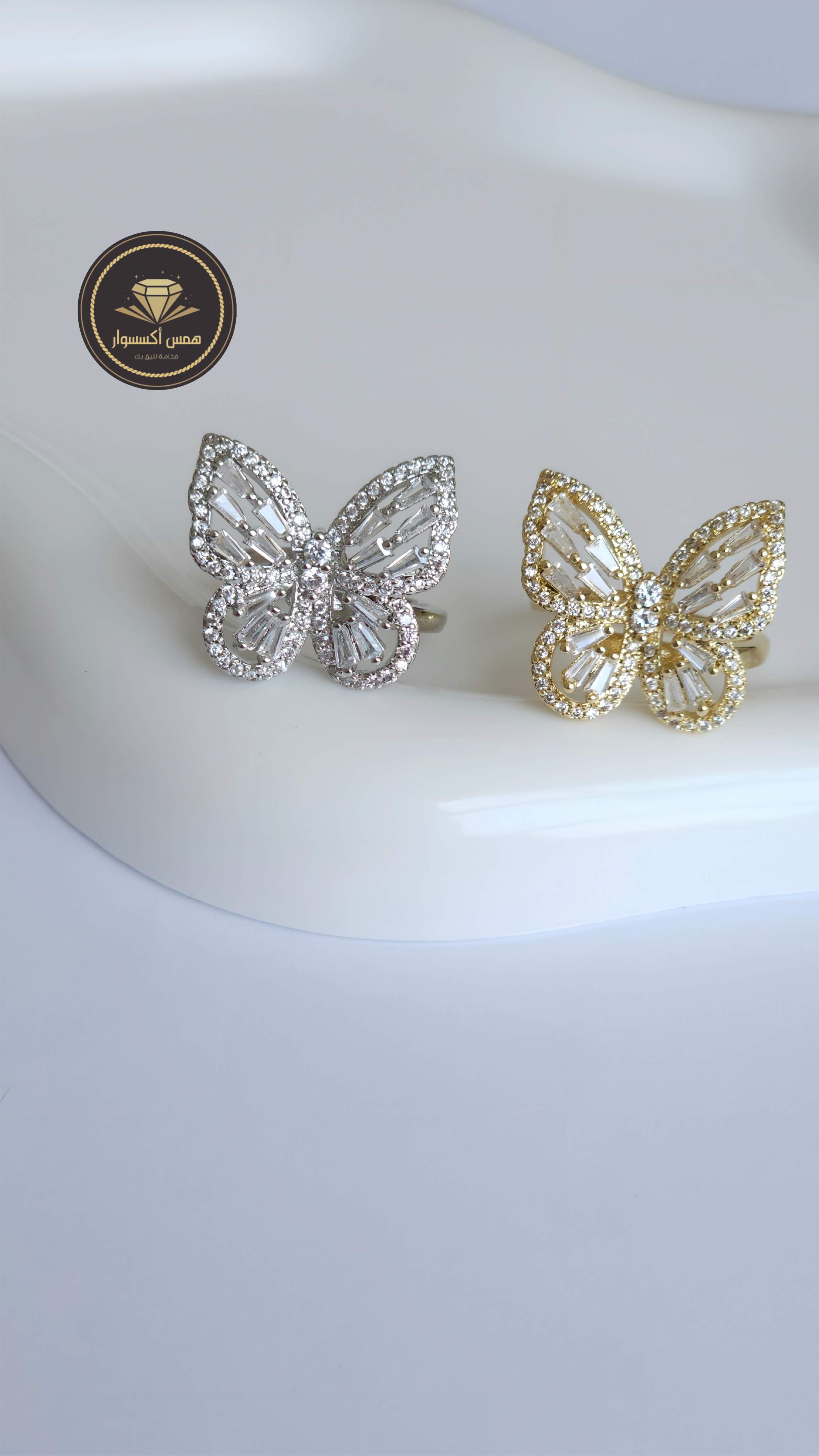خاتم الفراشة المرصع ذهب ابيض و ذهب اصفر السعر للقطعة